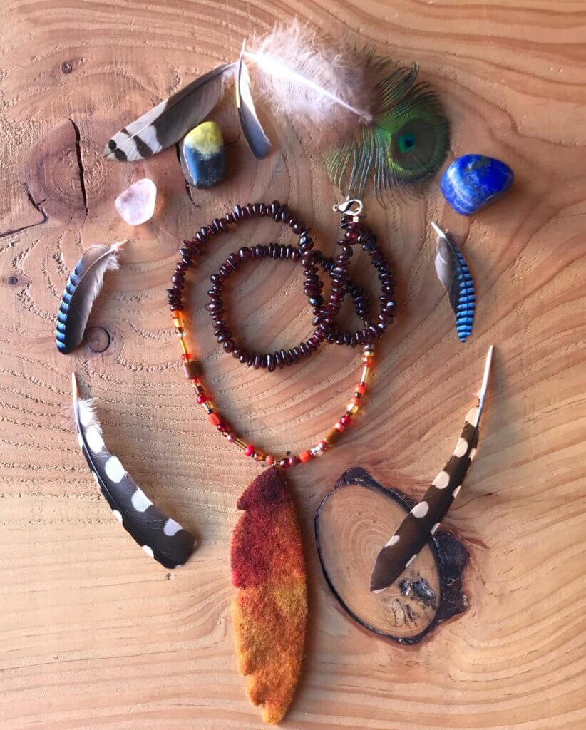 Each necklace in this collection is more than an accessory – it is a small work of art that connects the wearer to nature, creativity, and quiet inner strength. Crafted from natural materials such as crystals, wood, shell and woolen felt, these pieces celebrate the textures and colors of the earth itself. Every element is carefully chosen for its organic beauty and symbolic meaning: crystals for clarity, wooden elements for grounding, and felted wool for warmth and protection.